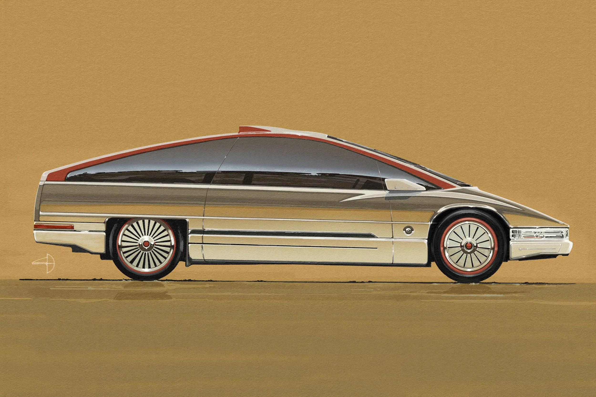 Citrine Drive is my take on a future Grand Tourer, fully electric, but with a soul rooted in vintage metal. Think ‘70s–‘90s GM vibes, short hood, flared arches, a streamliner-style glasshouse, and that yacht-like flow. I call it a “Grand Hatchback” it nods to practical icons like the Citroen DS, Lancia Gamma, and even the Ca- dillac Voyage, Sitrine or Syd’s Singer which genuinely inspired me. To me, it’s a “Past-Modern” tribute to versatile design.